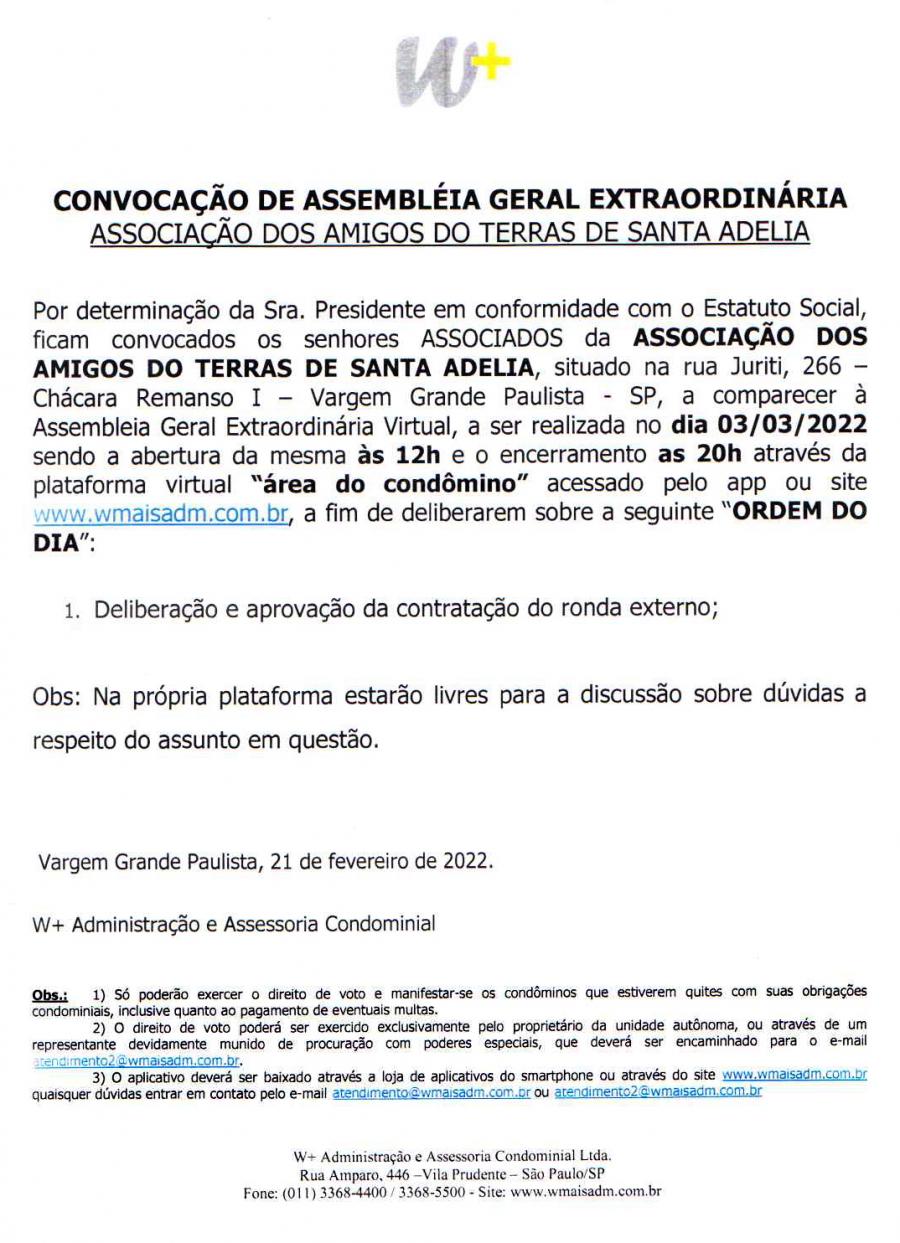 Convocação de Assembléia Geral Extraordinária