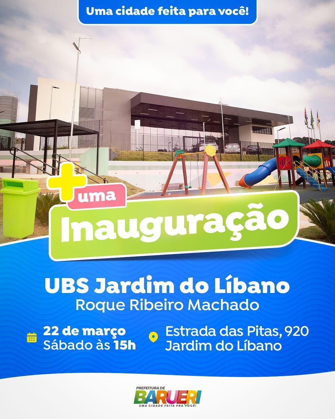 A Prefeitura de Barueri entrega neste sábado (22), às 15h, a UBS Roque Ribeiro Machado, localizada na Estrada das Pitas, 920, no Jardim do Líbano. A nova unidade amplia o acesso à saúde no bairro, oferecendo 15 consultórios, farmácia, salas especializadas e equipe médica multidisciplinar, incluindo clínicos gerais, pediatras e ginecologistas.